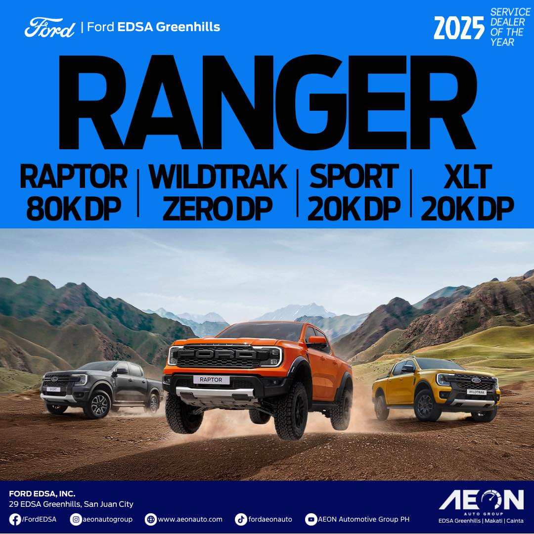 Ready to conquer the roads? Drive home your nextgen Ranger with ZERO down payment (or as low as ₱40K for the Raptor) plus FREE Dashcam.
