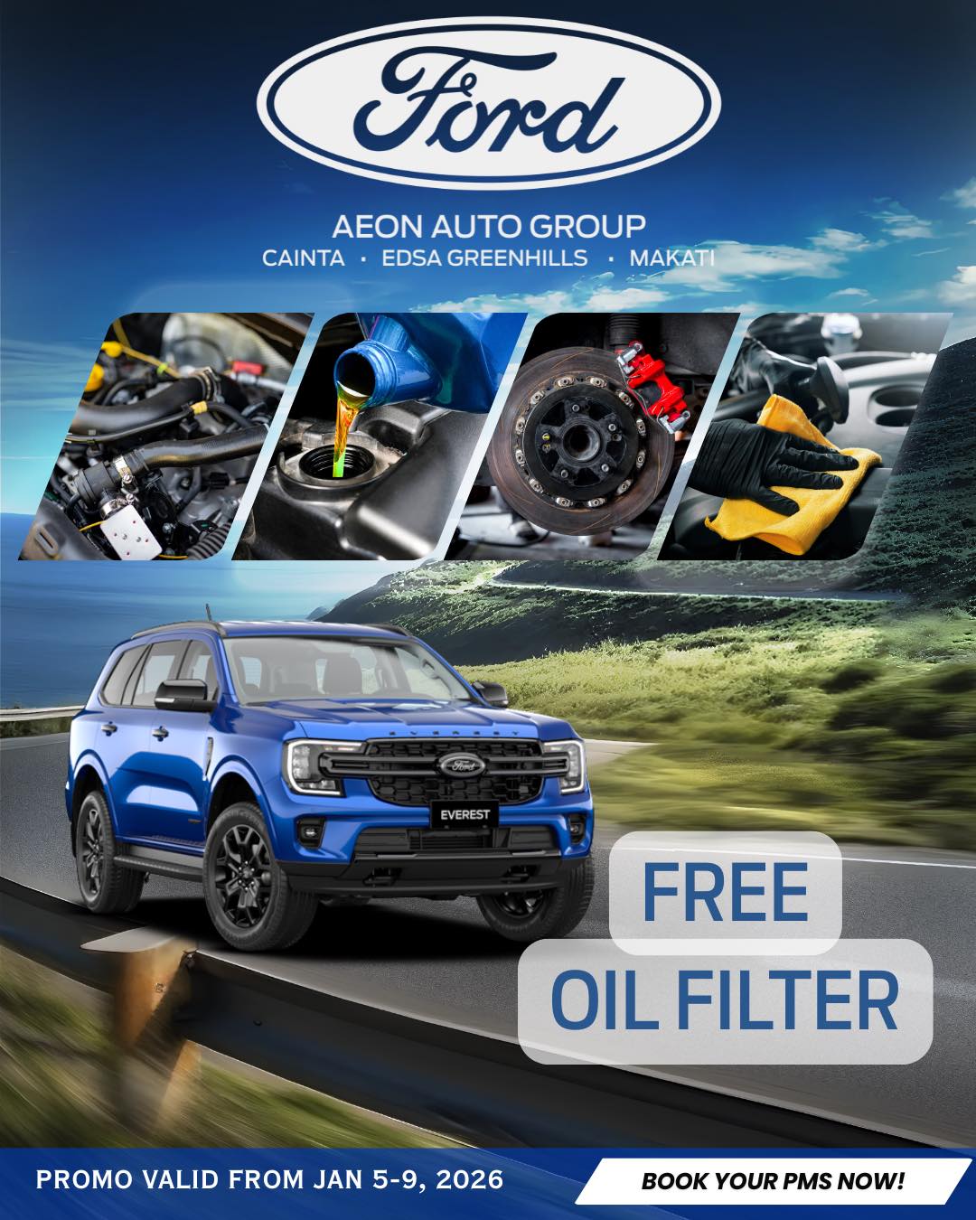 2026 New Year's Promo - January 5 - 9, 2026 - FREE Oil Filter- Valid in all ECY Group Dealers (Makati Ford, Ford Edsa, Ford Cainta)